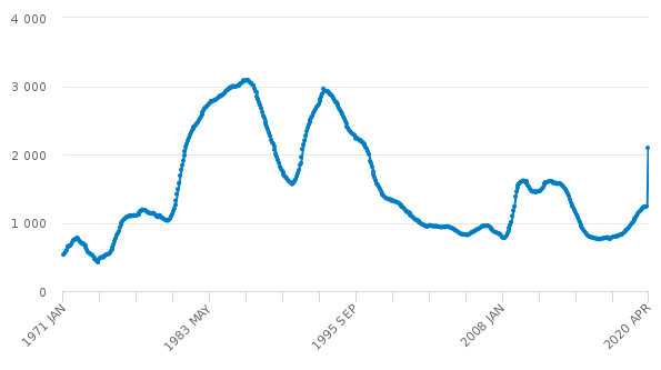 UK unemployment has been low in recent years, mirroring figures from the early 1970’s (+/- 4%). However, anecdotal evidence has suggested many households are already facing the impact of a sharp rise in unemployment. In his comments, Mr Haldane expressed trepidation about a deterioration toward levels last seen in the 1980’s recession, when the jobless rate exceeded 12%. These anxieties have proven efficacious, as today’s claims data demonstrates: official figures reveal a record monthly rise of 857,000 new benefit claimants. The upsurge takes total benefit claims from 1.24 million to 2.1 million (six times higher than the previous largest monthly rise of 143,000, recorded in February 2009, in the immediate aftermath of the financial crisis). Disconcertingly, the data only partially captures the first full month of lockdown. The cataclysmic economic impact of Covid-19 threatens a repeat of that straitened period.